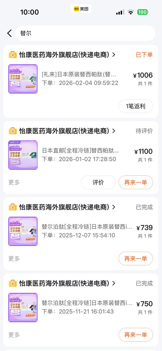替尔都是从美团买的,但好像只有深圳的美团有卖?