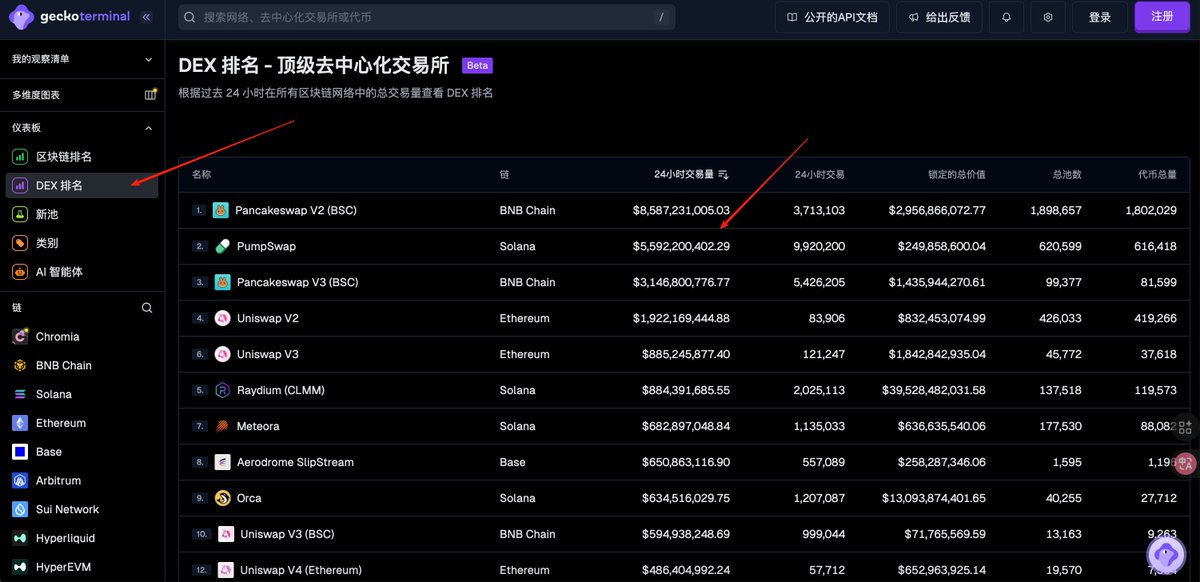 2️⃣通过 DEX Ranking 我们可以看到PUMP的交易量正在逐渐增大,很多玩家回到了SOL战壕
