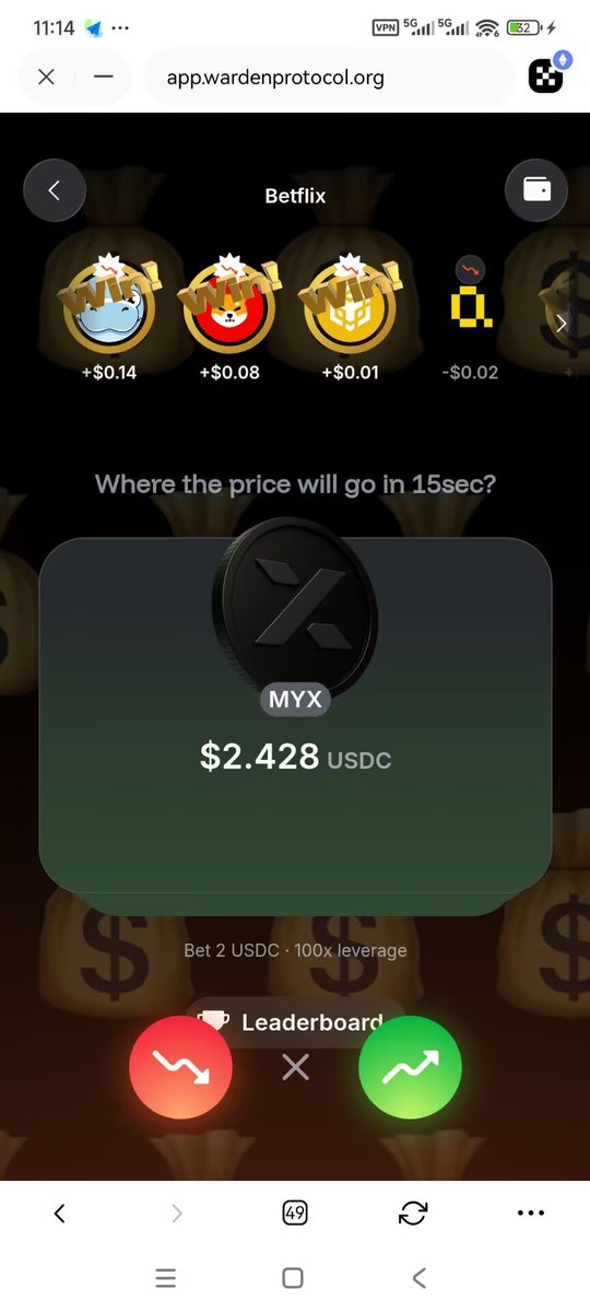本来玩@wardenprotocol的Betflix功能,左右滑动开单感觉挺好玩,后面越发觉得这功能很棒,虽说只有几十秒,但是跟着趋势玩 胜率还是很高的。