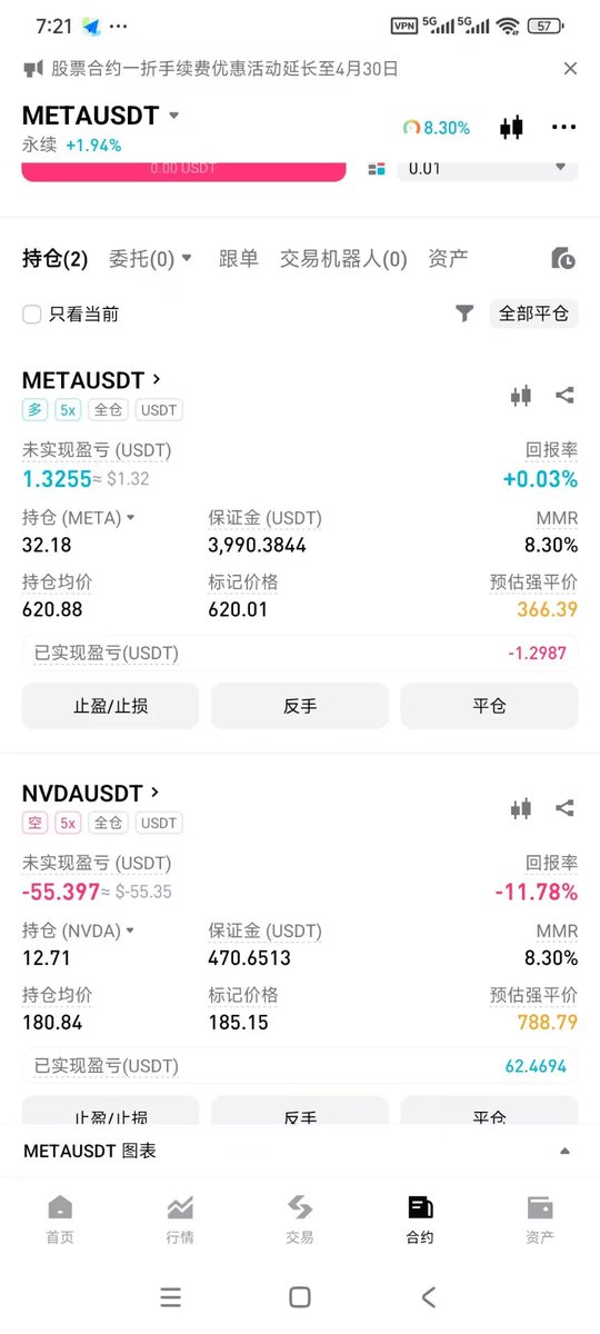 本来想着先提前报名下,没想到之前居然还有点美股空单忘了平 😂倍数不大,干脆加点资金继续玩。说实话在 Bitget 玩美股确实挺省事的,顺手还能蹭点空投,反正战队该加就加,这吊逼行情有的赚就是好事。