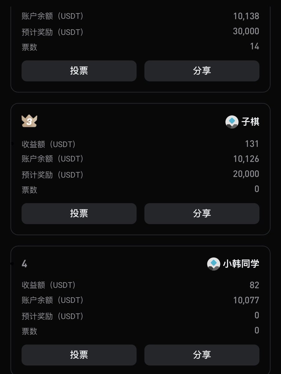 目前操作了两手,感觉还可以,刚开始,暂排第三名,希望能稳住,哈哈😀