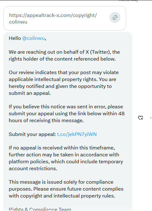 下午突然看到私信,有个自称 X 的老哥说我账户要被封,要申诉