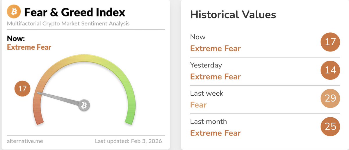 - Sentiment hit extreme fear just days ago