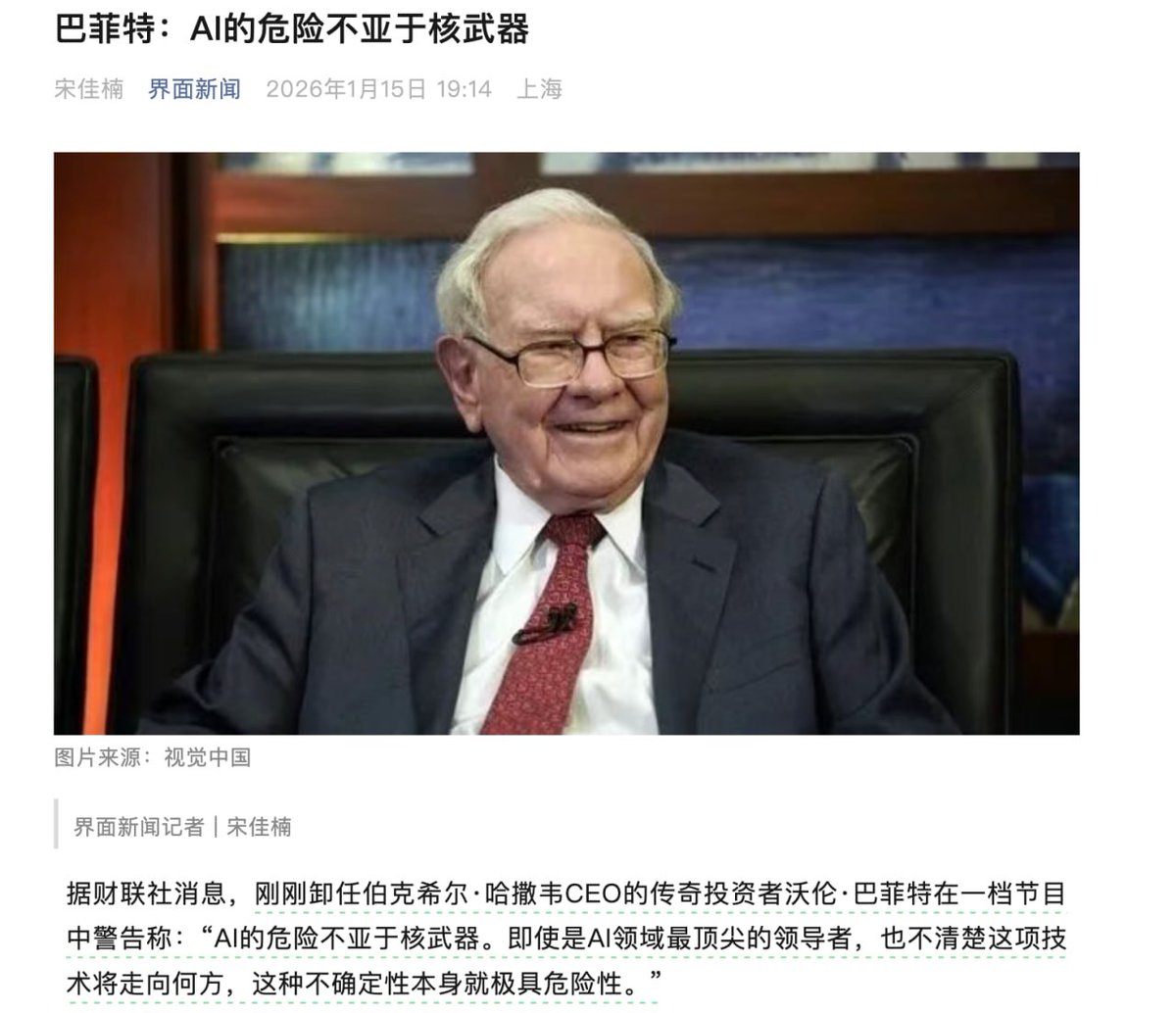 最近巴菲特把AI类比为核武器