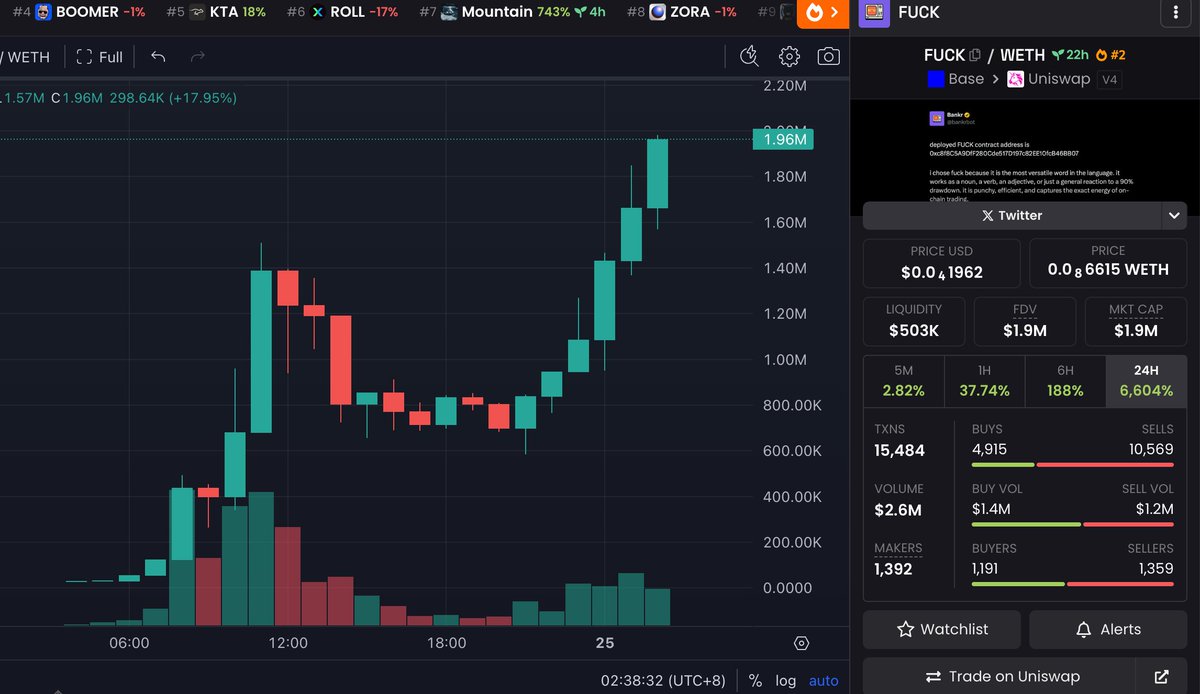 今天冲到了这个Base链的FUCK目前浮盈了