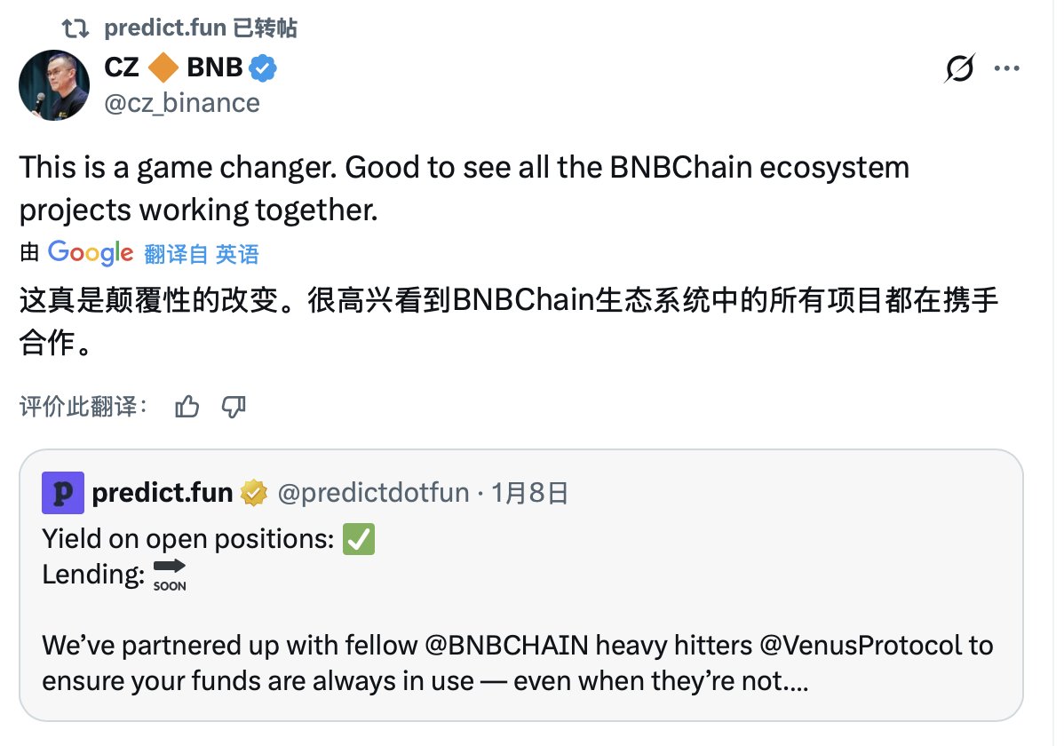 @predictdotfun 是bnb链的一个预测市场,YZi Labs 孵化