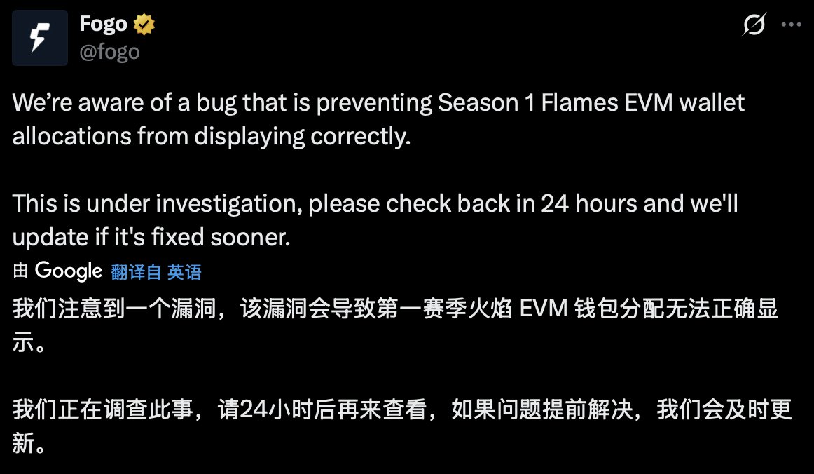 @fogo 的空投今天领,昨天有部分账户明明有火花,但是查了空投不显示