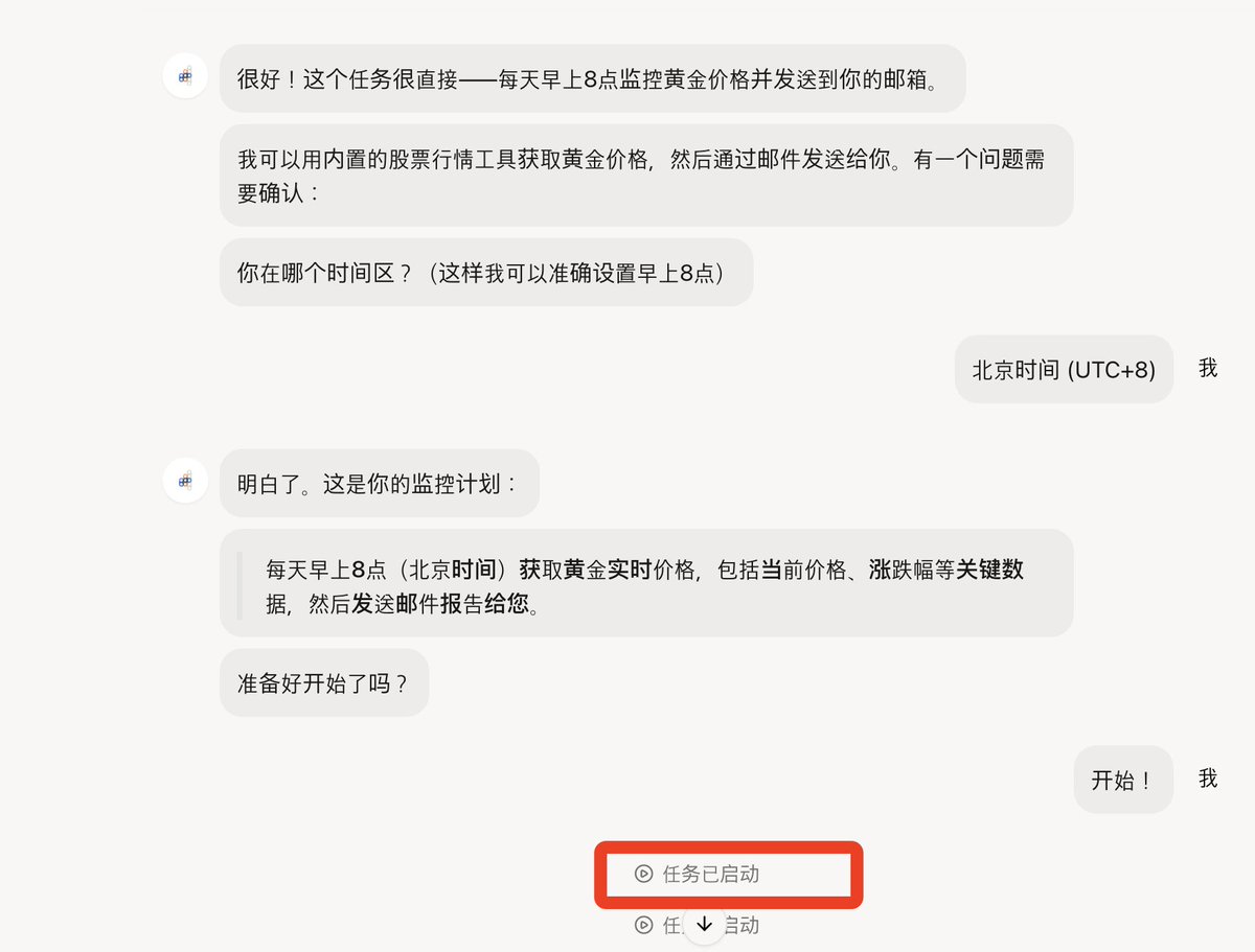 比如实时发邮件推送黄金价格等,最后点击开始,就可以跑了