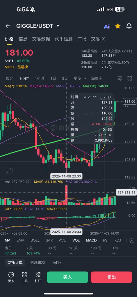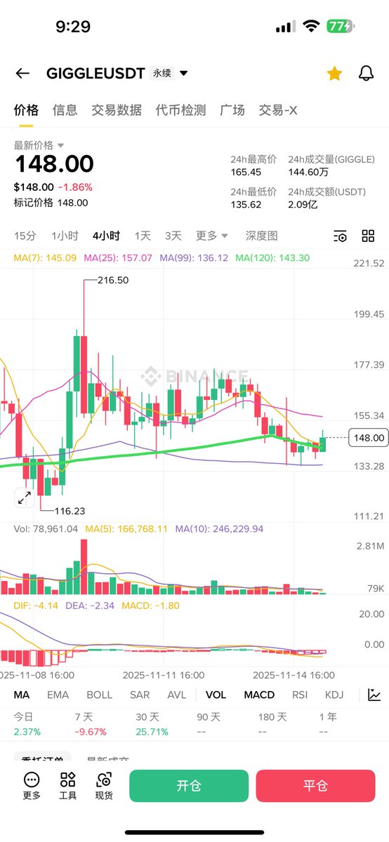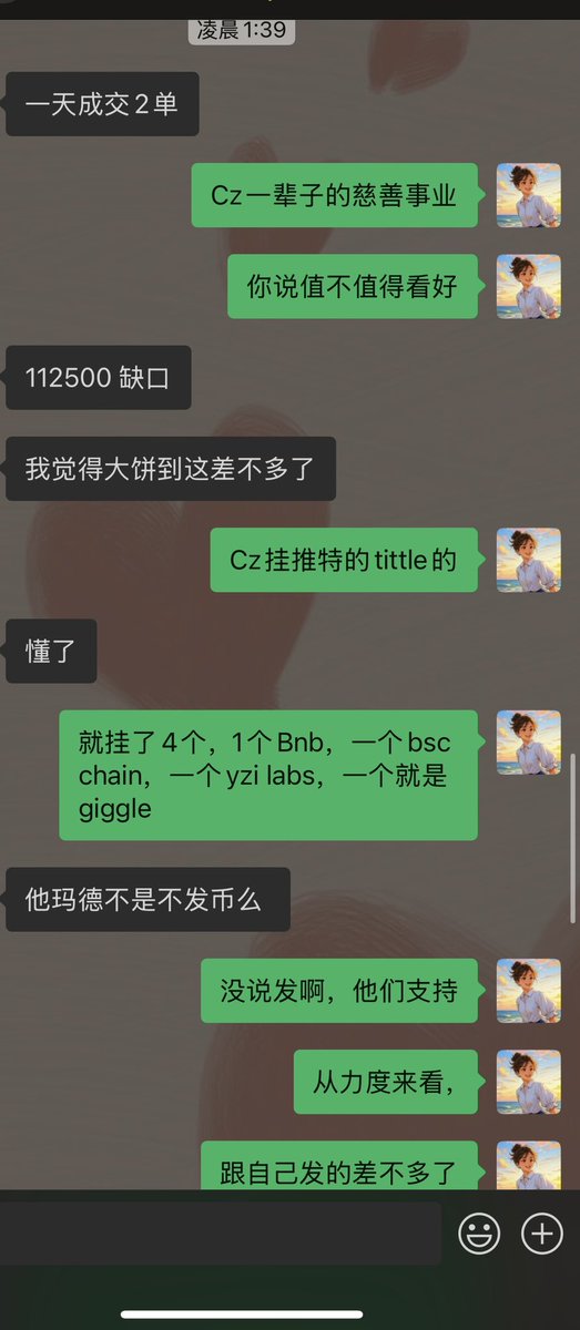 $GIGGLE 出来也就一个多月,就成为了这7个月来币安首个也是唯一一个上现货的meme项目,并且还是周六上线的,上完现货就开通了理财及质押(同期上线的 $F 未开理财,$F 上现货的一个原因是已经上完upbit 了)由此可见,币安对 $GIGGLE 是不一样的,一路开绿灯(那么?币安会不会发布公告捐出 $GIGGLE 现货的交易手续费支持这份慈善事业呢?以一姐对表哥的爱,必支持大表哥的终身事业)或者说难道大表哥的终身事业就这,我不带脑子想也笃定答案是不可能的!so,不要慌(主要是慌也没用😬