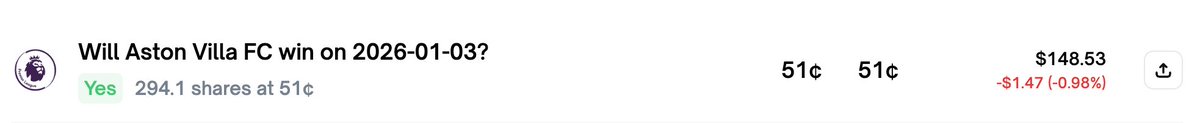 2⃣ 昨晚皇马最后时段领先,及前几天水晶宫被绝平倒亏的持仓过程来看,带来一个新的角度:可否考虑利用 polymarket 可提前售出的机制,锁定利润提高资金的周转,而不是贪心持到终场,赚最后一个铜板?