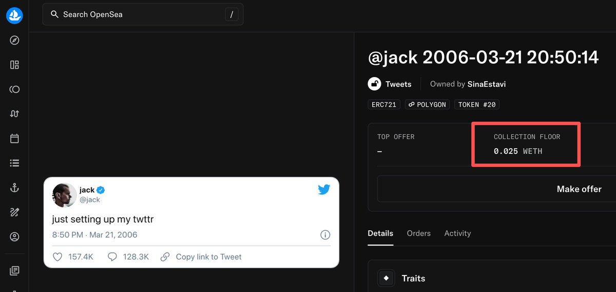 推特的创始人Jack Dorsey @jack把推特历史上第一条创世推文铸造成NFT进行拍卖,你觉得它应该值多少钱?