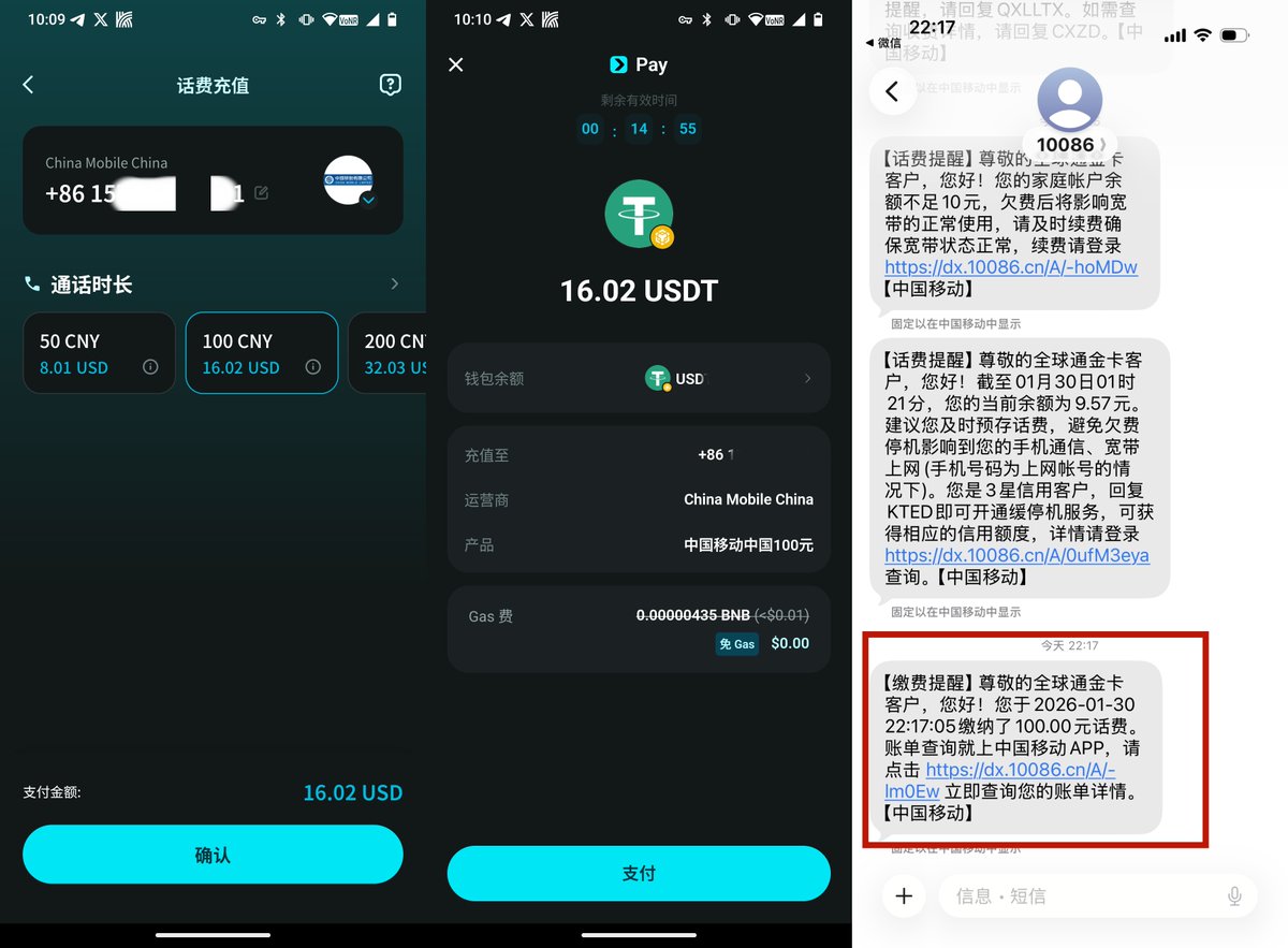 于是我在 @BitgetWallet Pay页面,发现了【手机充值】功能,随手给国内手机冲话费,没想到5分钟充值成功。