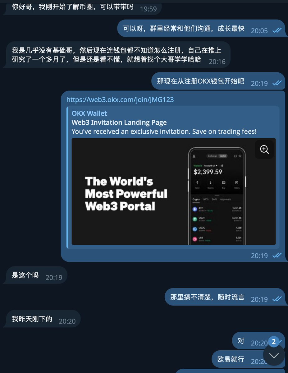 同时我们也吸引了很多不同基础的人,比如这位老哥不知道钱包怎么用,我们也是手把手带教。