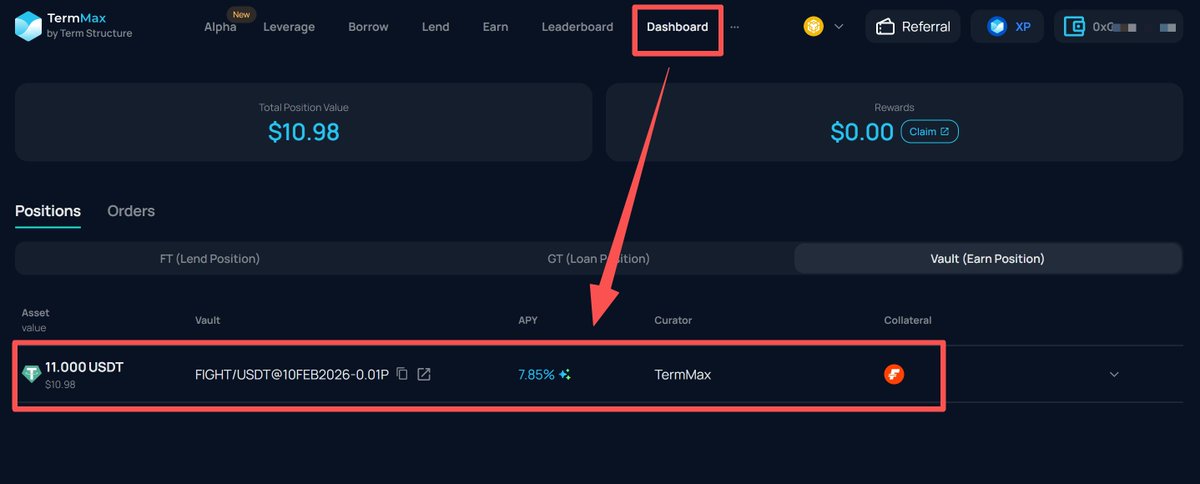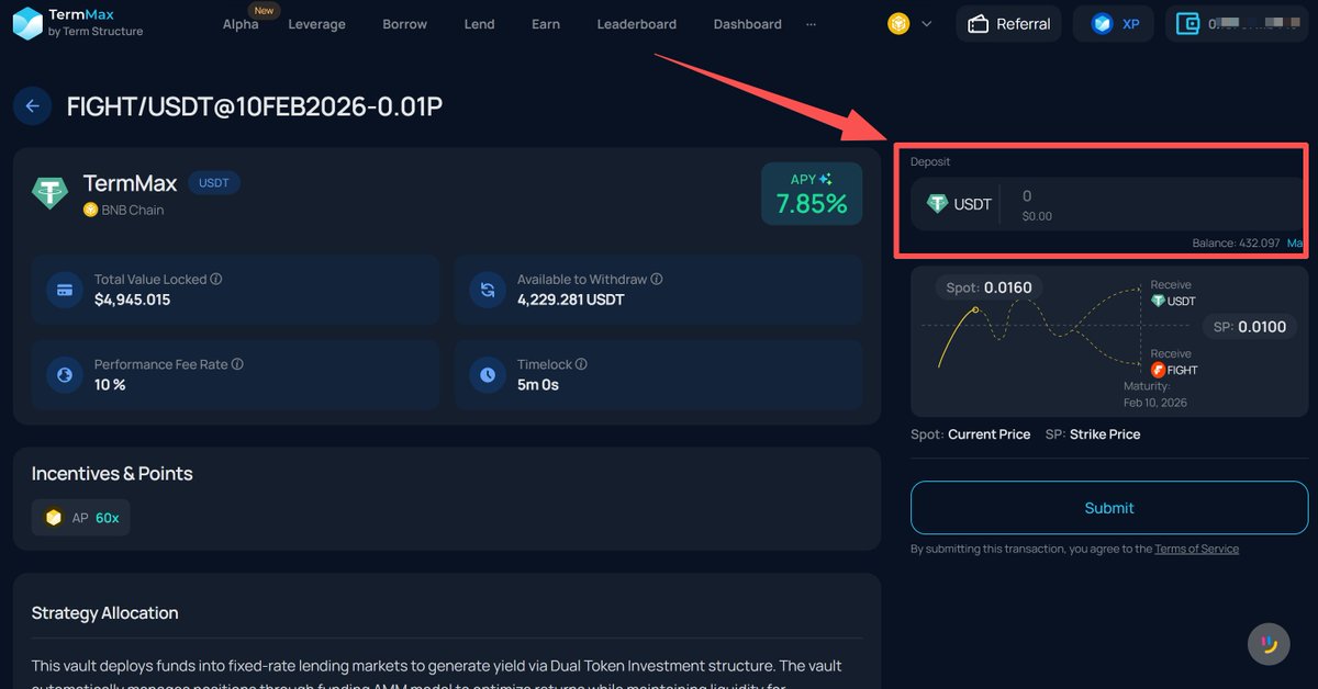 @TermMaxFi 为了累计一些AP积分,存了11U的USDT在Alpha版块的Fight/USDT交易对,年化利率是7.85%,但是我也不敢存太多,只是单纯为了拿些空投积分。