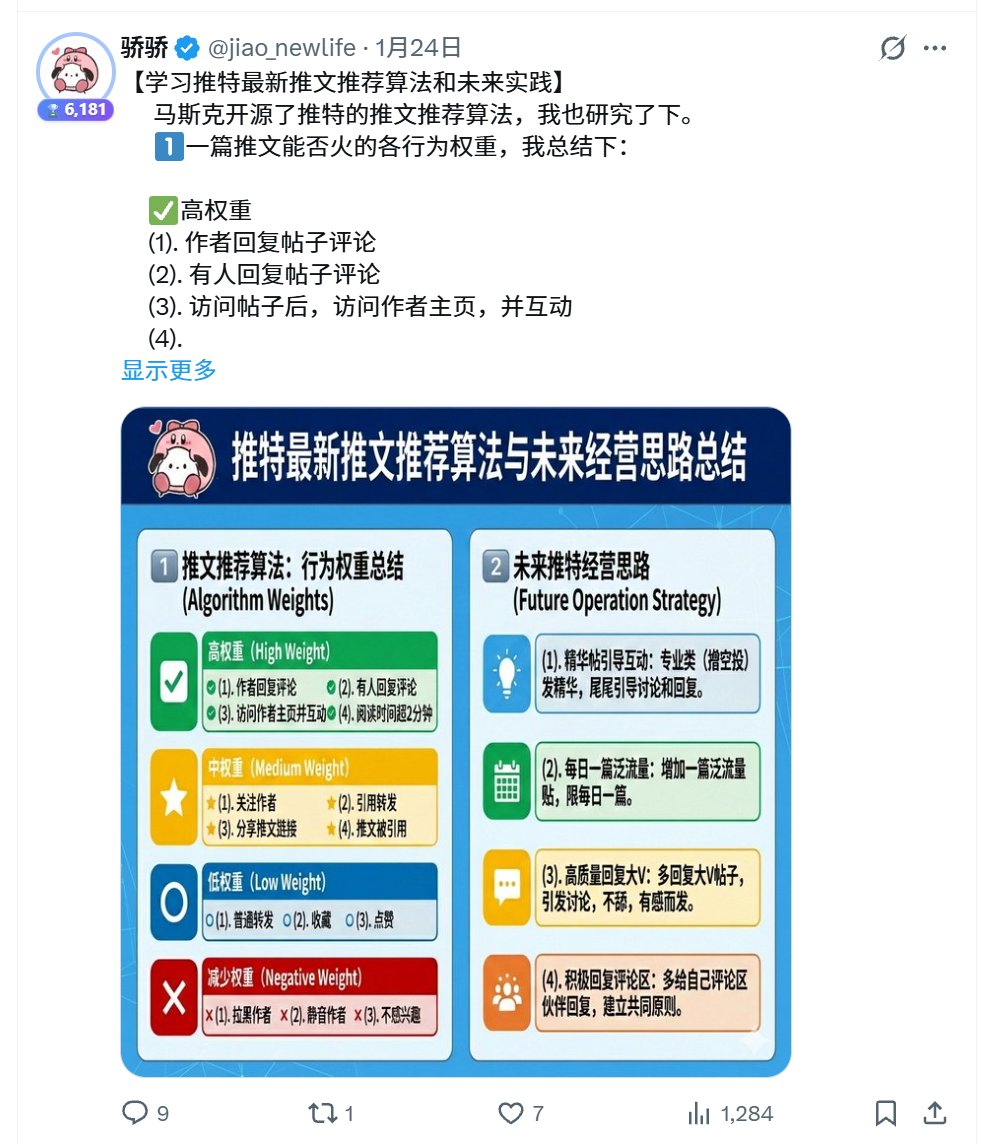 我昨天下午认真研究并总结的帖子“学习推特最新算法和未来实践” 9评论,1284浏览...