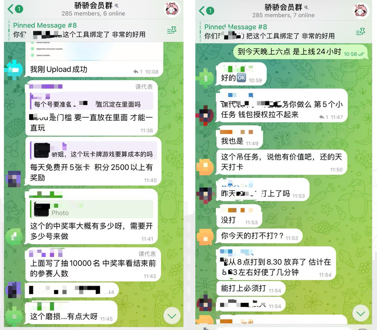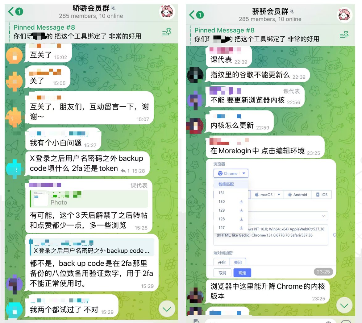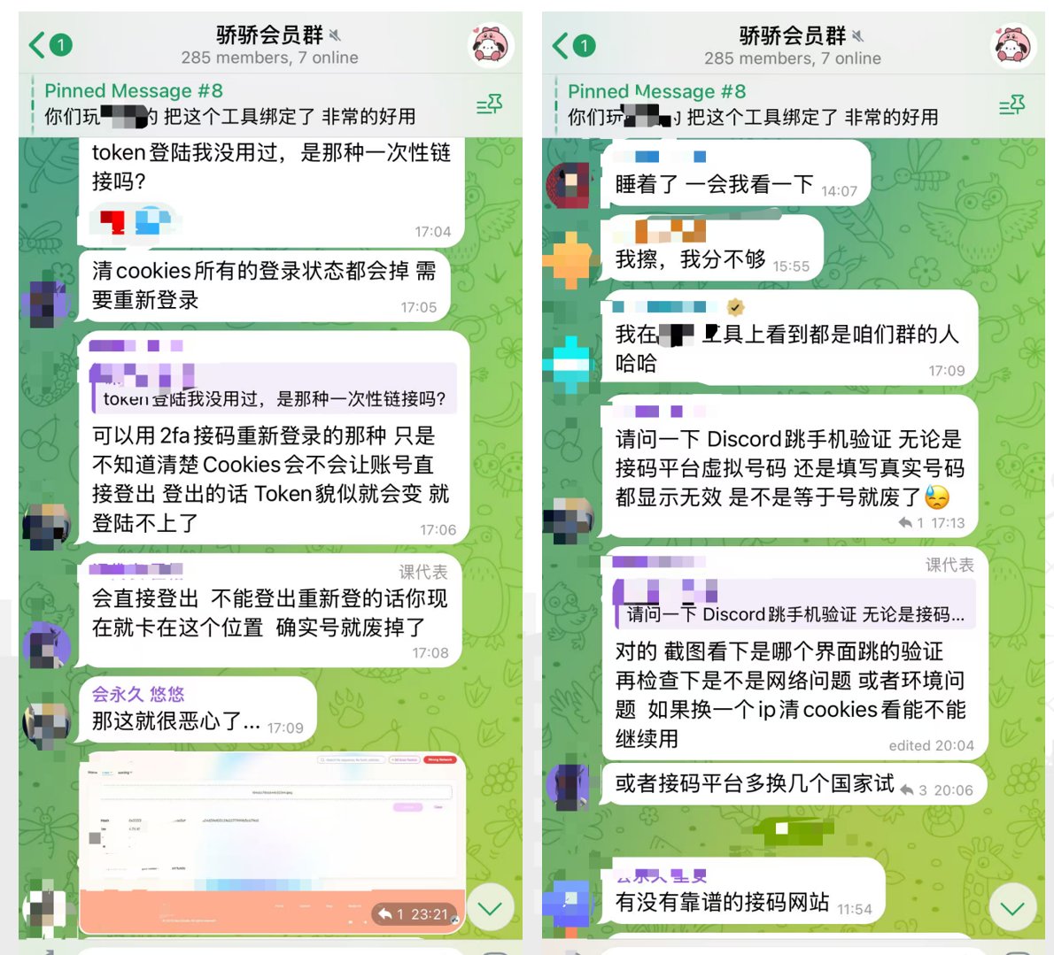 图3-4 课代表和会员在社群内交流社交账号和撸毛策略的一些问题
