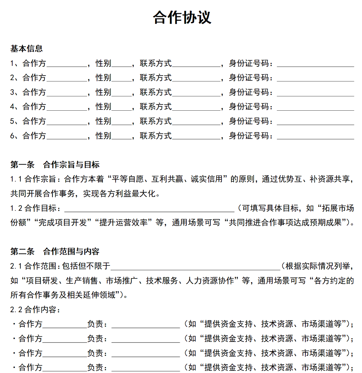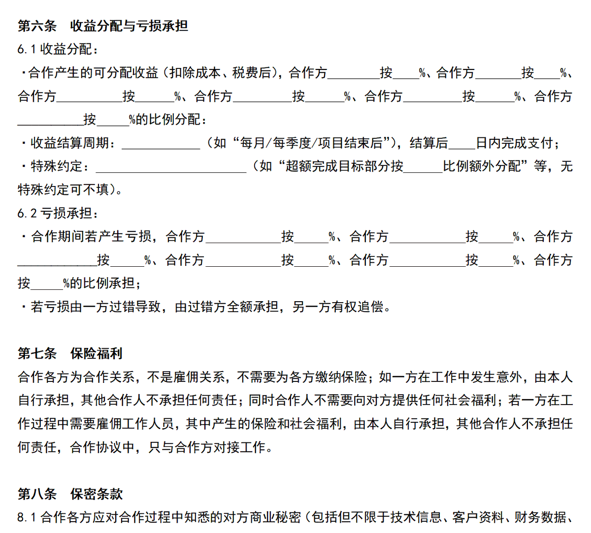 1⃣合作模式的合同,非保障合同。