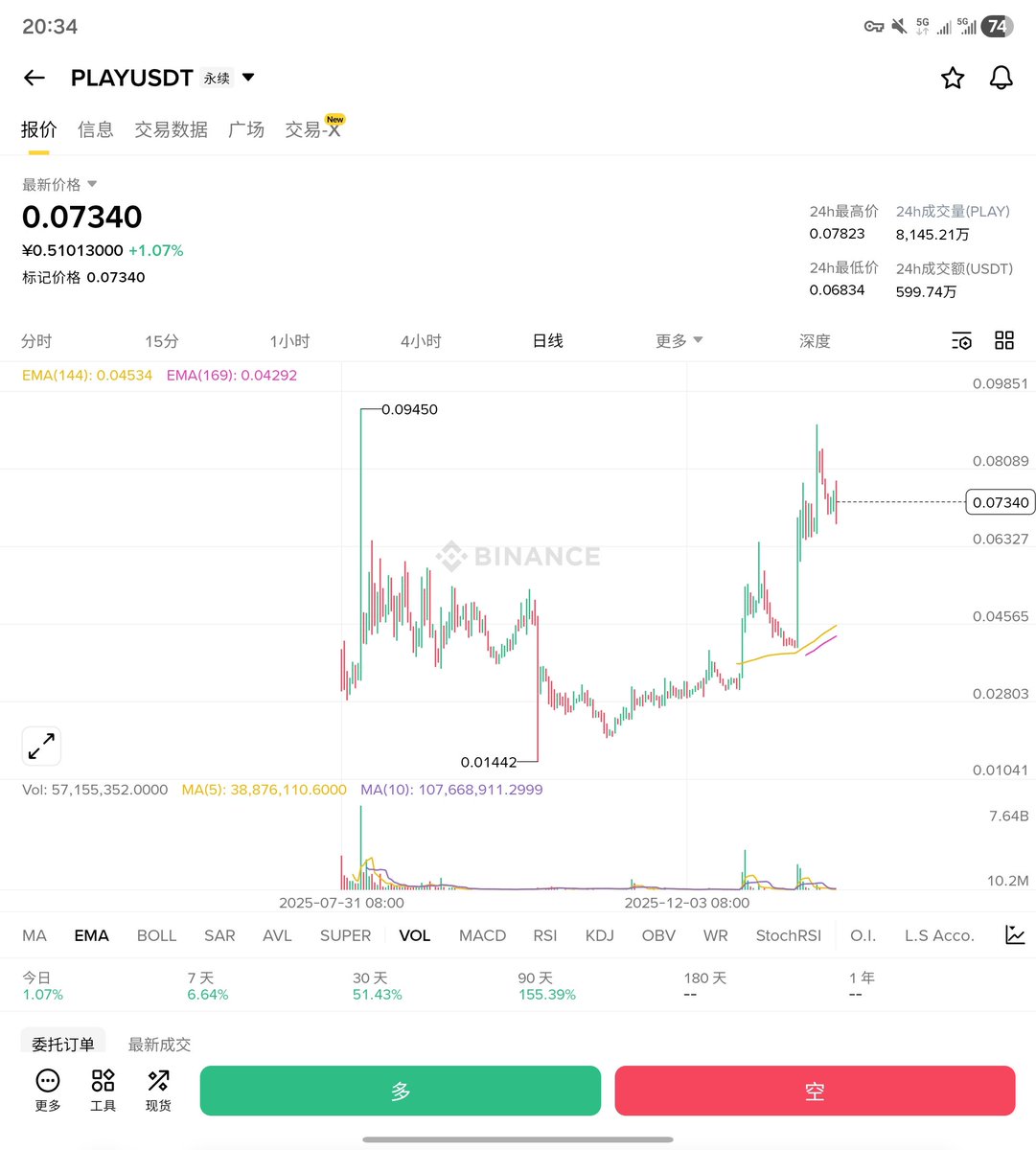 做空play这个垃圾币吧,这个走势,看着像双顶,新高止损