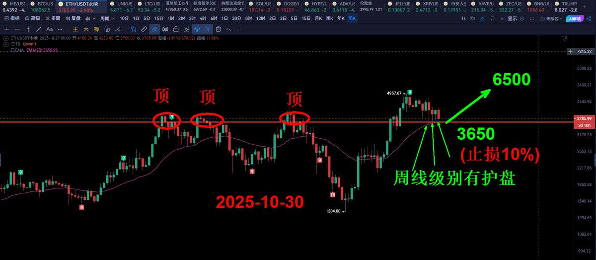 2. $ETH 跟着大饼跌破3900/3800了,目前在3750附近,看看情况吧,周末马上来了,又要等待周末行情;