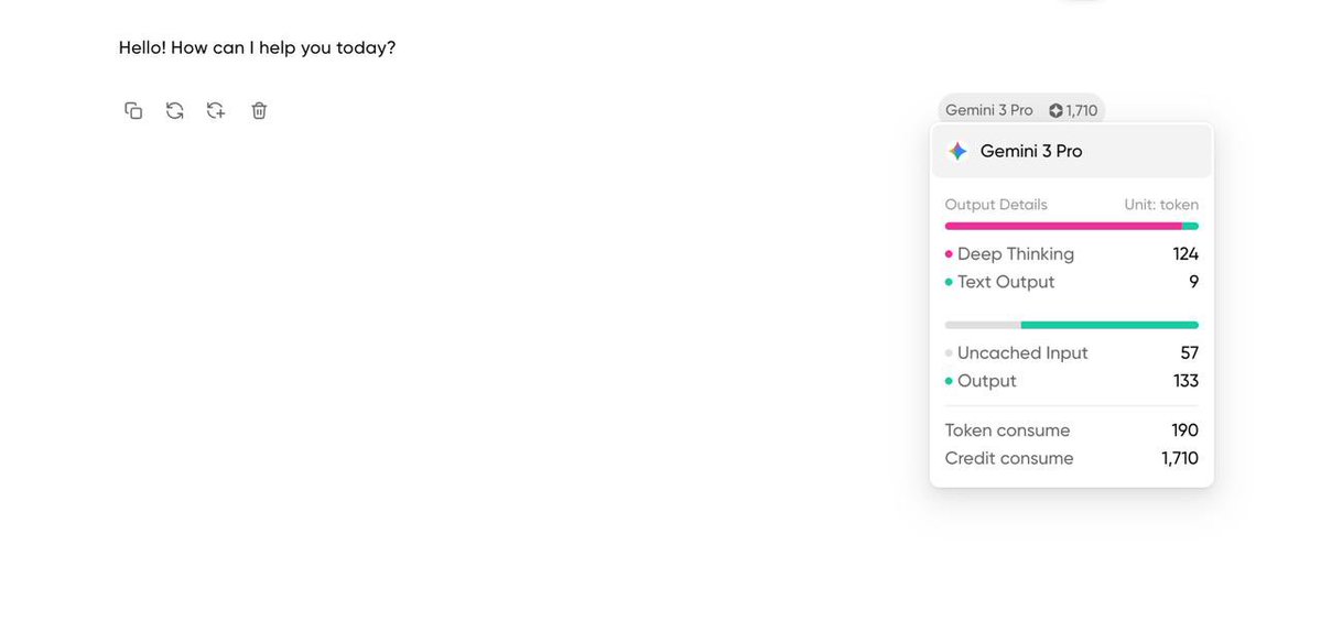 内涵:这说明它是像 o1 或者 Gemini Pro 这种带有“思维链”的模型。如果是在黑盒平台,你会觉得“我明明只收到了几个字,凭什么收我这么多钱?”