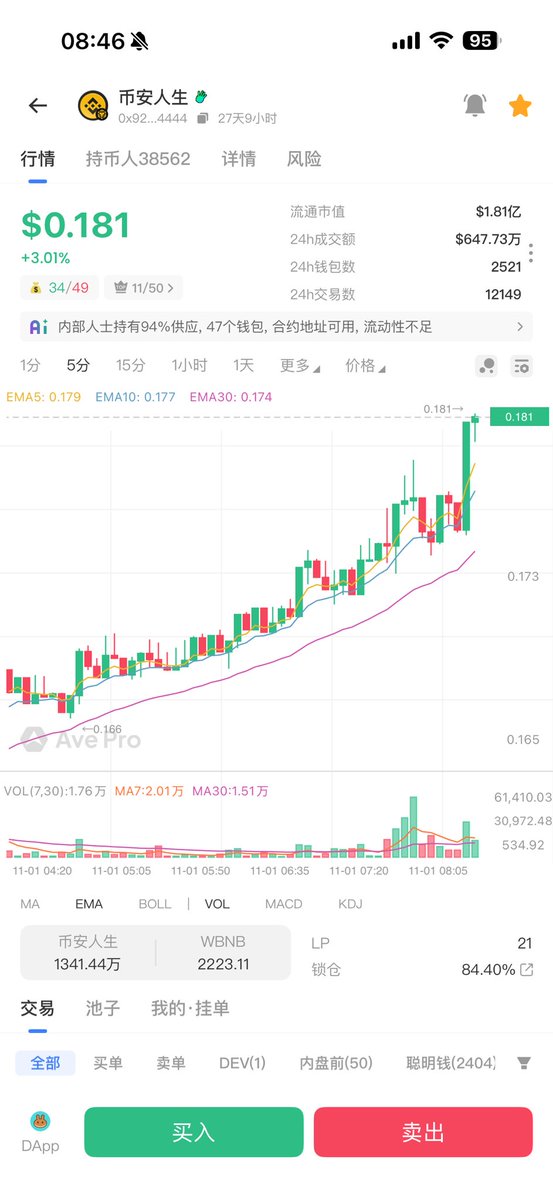 几分钟内,流动性池被灌满、推特热度飙升、交易量突破几千万美金。