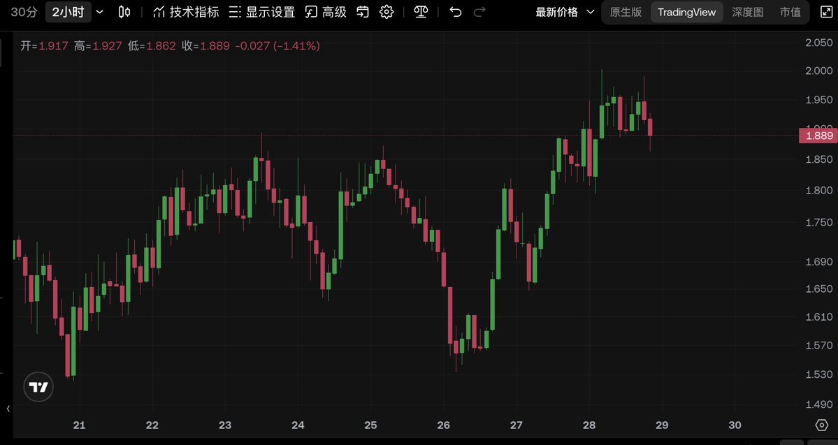 说下 @Lighter_xyz lit的走势其实比较弱的,hype这次非常强势的突破,因为交易量基本面的变化,有贵金属交易量的暴增。对比“btc的小回升”+“hype暴涨”,lit其实连这个底部区间还没突破,在区间上沿一点磨来磨去的🤣,迟迟不肯大涨一硬波