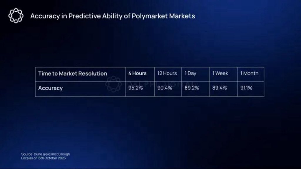 ▪️交易量与预测准确率呈强正相关。那些交易量超过千万美元的市场, consistently 达到最高的预测准确率。这说明,流动性不仅是交易的燃料,更是市场揭示真相的能量来源。