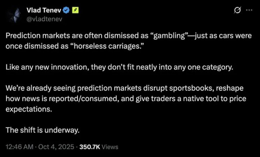 最近和做这个赛道的朋友们聊天,他们都强调预测市场不再只是预测未来,已经开始介入未来了,甚至说预测市场已经进化成宏观对冲和新闻2.0基础设施。