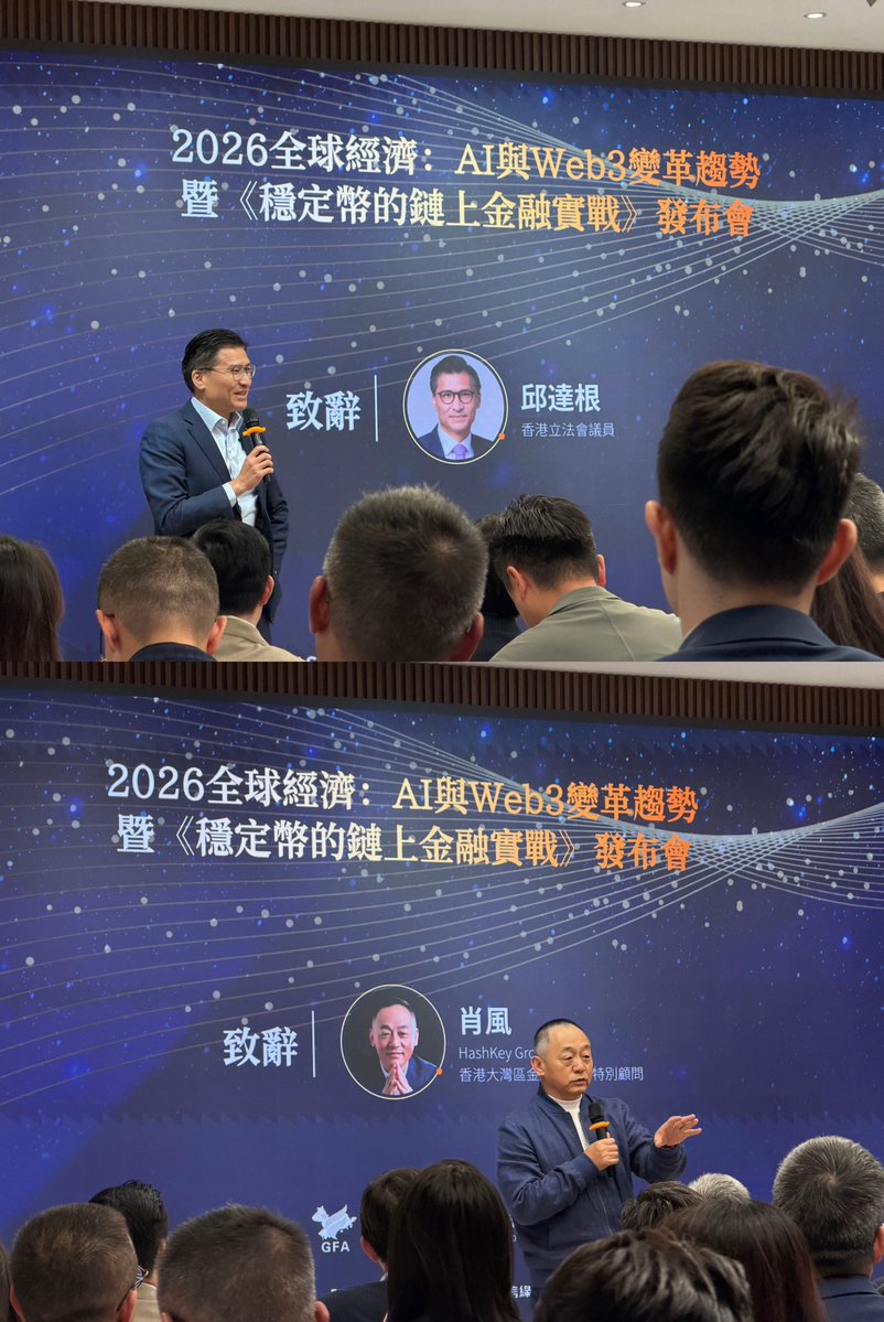 活动开场,香港立法会的邱议员就指出:稳定币及数字资产的发展需在清晰、循序渐进的监管框架下进行,香港通过不断完善法律框架和监管工具,兼顾市场活力与金融稳定性。未来传统金融与区块链将相向融合,在合规前提下推动金融体系稳健创新。