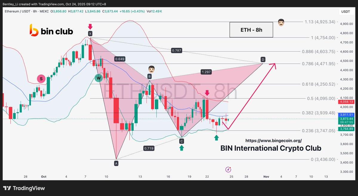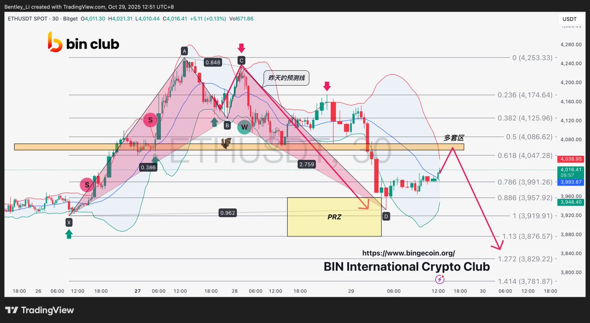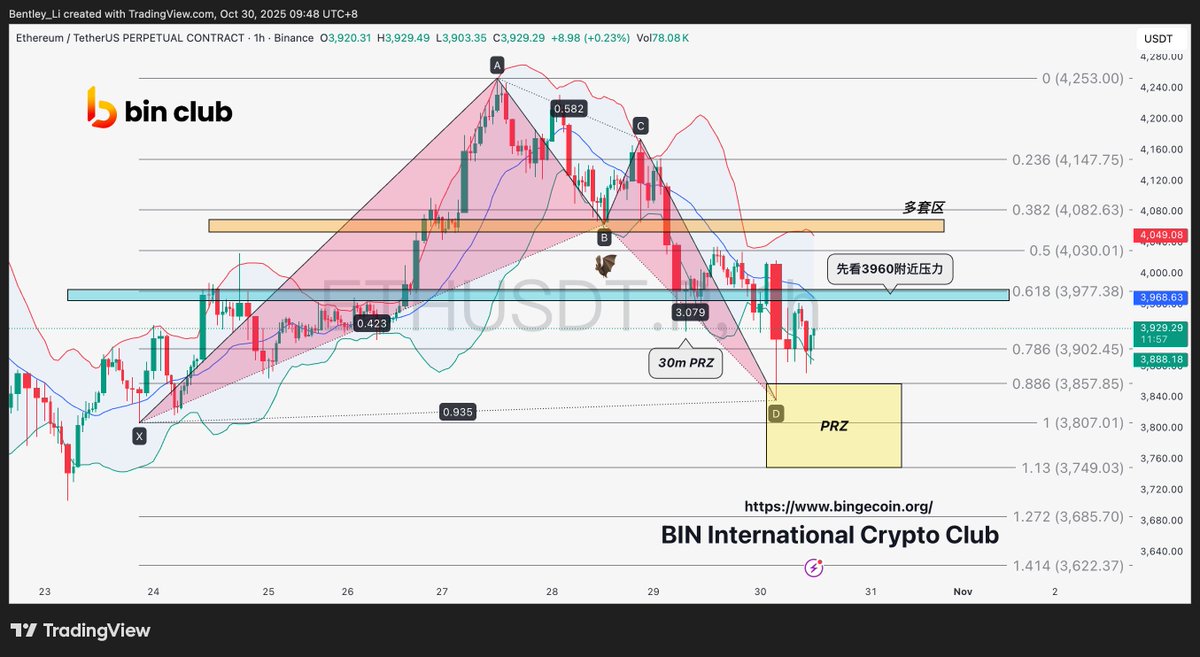 #ETH 以太也基本如预期,到达PRZ后反弹,先看3960压力位,突破的话看多,上不去看二探到PRZ