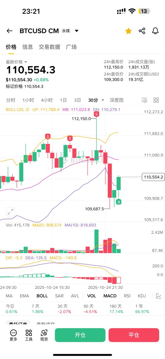 #BTC 昨晚CPI如预测的3.0%,走势也基本如预期,先拉后砸再拉,饼子形态逐步龟缩到1h布林上升通道,回踩110k不破继续看涨,跌破看下方107k支撑,大家周末愉快 ⛱️