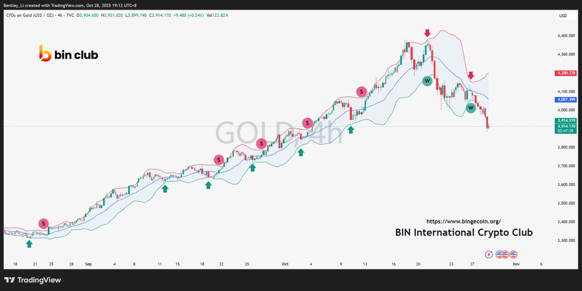 #GOLD 黄金布林4h级别的多空转换,这就是为何布林好用的原因,相关布林可视化教程(自编)链接: