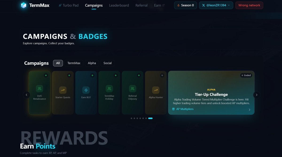 刚开始研究 @TermMaxFi 的时候,我差点以为自己误入了什么养成类 RPG 游戏的内测现场。左手一个 XP,右手一个 MP,我当时就想问一句:咱这能捏脸吗?能不能给我整一个暴富滤镜?
