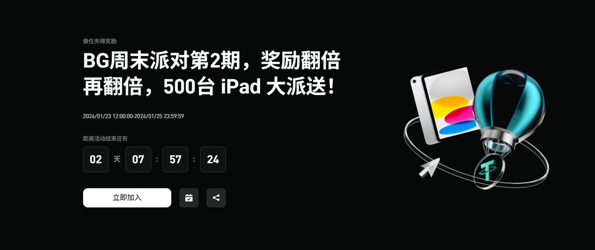 周末本想躺平, Bitget 非拉我起来发财!#Bitget 第2期派对奖励直接翻倍翻到姥姥家,500台iPad在线等亲。