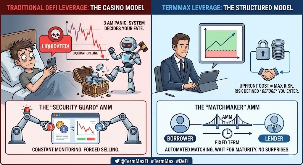 说白了,TermMax 正在把 DeFi 杠杆从“赌场模式”拽回“金融产品模式”。它不再让你和系统规则博弈,而是让你和市场结构共处。你当然还是可能亏钱,但那是你主动选择的结构性结果,而不是被波动意外“背刺”。