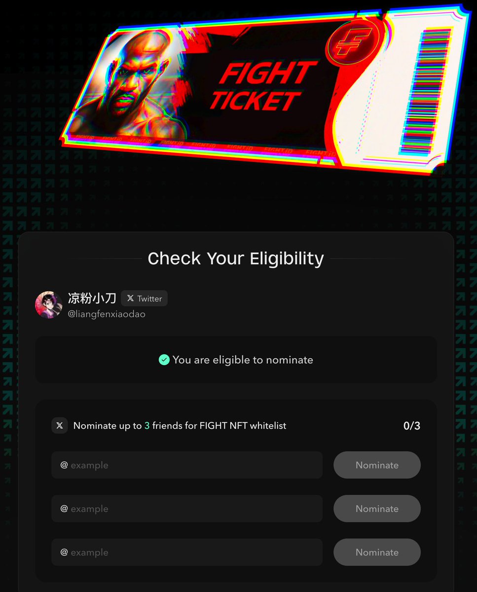 获得提名的人,后续可以获得 FIGHT Ticket 的 NFT,大概率会有一定的代币空投。