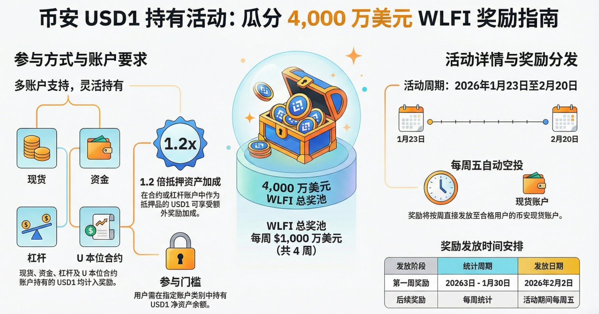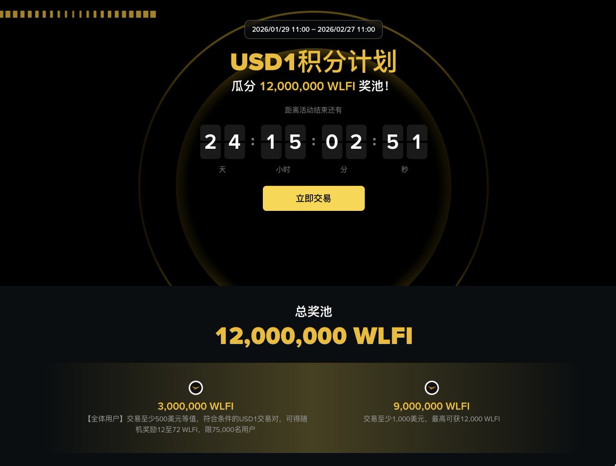 原来是币安又把活动又给续上了,超级加倍,奖励是4000万美金的WLFI,按照 USD1 的规模 30 亿美金美金来预估,年化收益大约在 16%~24%,难怪消息发布以后直接涨起来了,之前参加理财的不仅利息到手,还吃上了溢价...