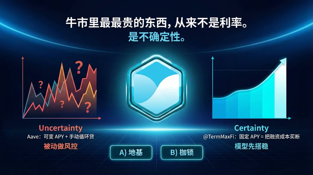 固定利率/结果确定性的路线更贴合 @TermMaxFi 这类:把成本与风险提前定价,极端行情里更容易保有选择权)