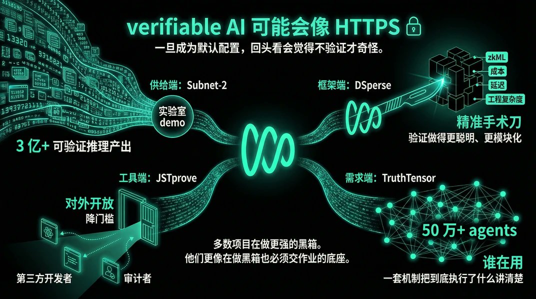 如果 2026 这条闭环继续跑顺,verifiable AI 可能会像 HTTPS:一开始麻烦、成本更高、集成更难,但一旦成为默认配置,回头看会觉得不验证才奇怪。