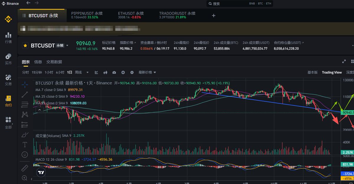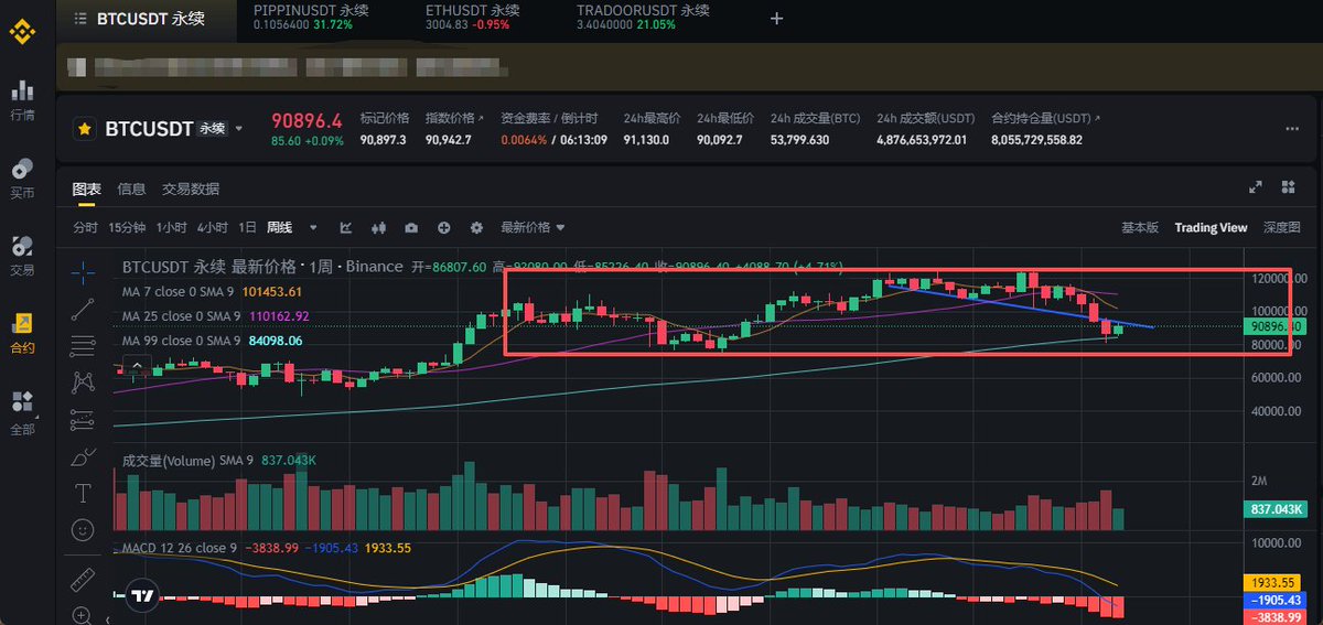 这一波加密真的惨,美股涨的时候一点没跟,美股锤的时候一次没落,比特币日线又从97000门了回来,最近这种来回折腾的时间属于垃圾时间,我没有任何操作,继续等待比特币新低(80k以下)的出现后才会开始买入,目前看85-86k的支撑力度应该还是存在的,不过按照当下的场面来看,最终破掉的概率还是很大。