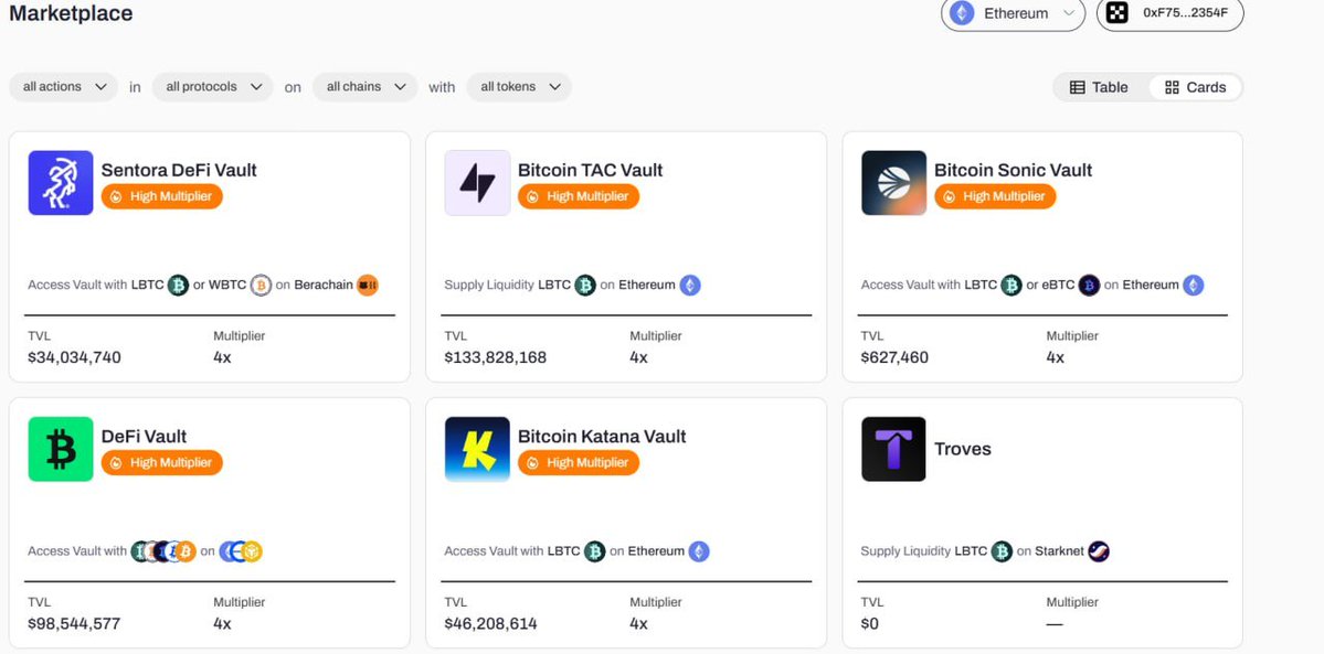 与katana的理财活动同样还有 Sentora TAC Sonic DeFi 4种有关LBTC和wBTC的理财都有4x的积分加成