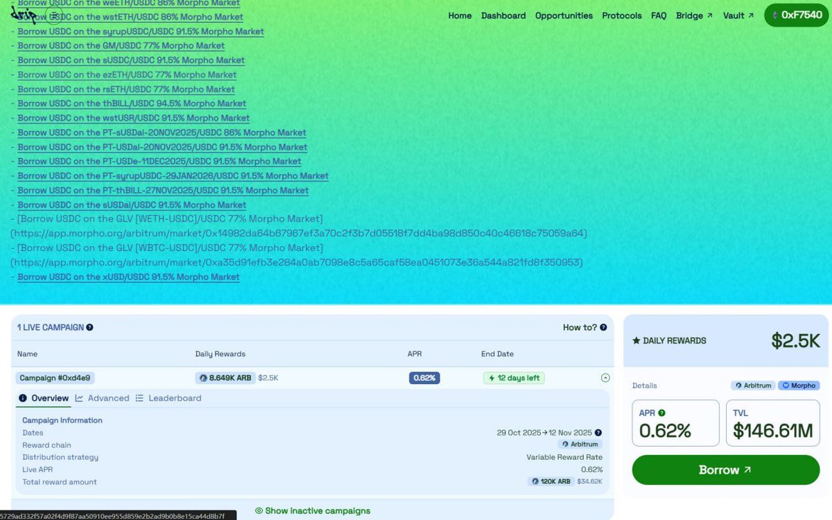 arb drip活动第五季给在morpho借USDC的人准备了总奖池120K大约35KU