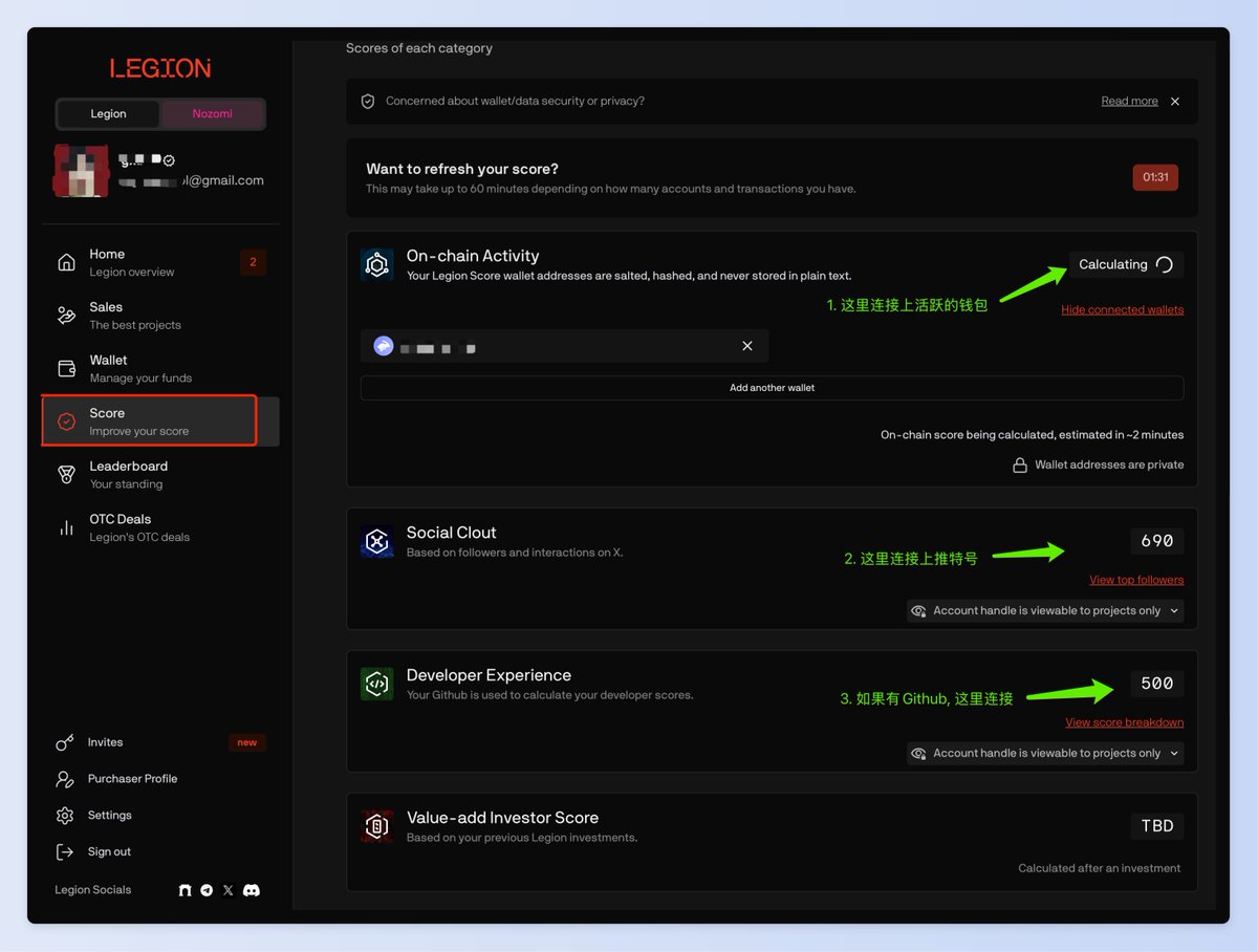 Legion × Kraken 海妖交易所联合 Legion 的第一期 Launch 打新 $YB 即将开始。不想错过的, 按下面的教程参与: 1⃣ 打开网站 https://t.co/rmYfRg2qBj 2⃣ 输入邮箱地址然后到邮件里找验证码登录上 3⃣ 绑定活跃的推特账户 4⃣回答关于是否美国身份的问题(选 NO); 5⃣使用护照完成 KYC(身份证可能也行,我用的护照) 6⃣完成地址验证。用信用卡账单/水电费单, 京东、滴滴打车发票应该也可以, 要求是3个月以内, 有你姓名和地址。 7⃣到 Score 页面, 拉到下面关联你的链上钱包和 GitHub(如果有) 注意: 此次活动的 Score 门槛为 350 分, 确保你的积分不低于这个, 然后等待活动开始! 有问题需要帮助, 可以wx或者电报找我