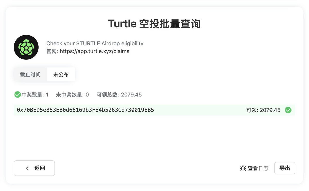 Turtle 空投批量查询 祝您每个钱包都有资格!