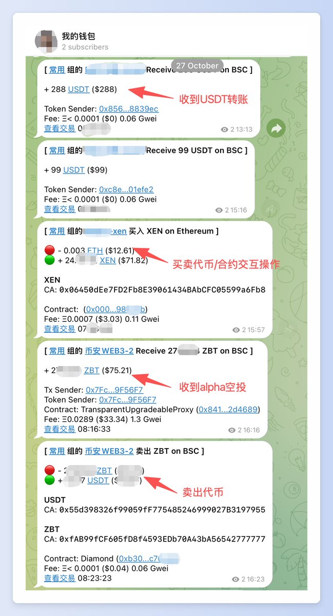我做客服这些日子, 遇到过不下10个人, 他们的钱包被盗之后, 几小时甚至几天后才发现。 黑客盗走的币都转了N道, 找到我们问说有没有办法找回。这种情况要找回来不说不行, 只能说机会渺茫。一边帮分析一边安慰, 加油咱们再赚回来。 或者给案例说谁谁谁和你一样, 损失更大, 对比之下他能稍好受点。 钱包私钥泄漏的方式有千百种, 只能平时多做防护, 热钱包少放资产, 用两台电脑把交易和工作娱乐隔离开。 我自己还有一个办法,能让自己万一不幸被盗时减少损失: 就是 - 把我所有钱包都监控起来, 不管是 BTC链/ETH链/BSC链/Solana链/SUI链 ... 一旦有任何交易都能保证在第一时间收到报警通知。如下图👇 监控好以后, 如果发现某条交易不是你自己操作的, 就马上可以采取行动了, 这时抢救起来大概率可以挽回部分损失, 比如说像这两天GMGN部分用户被盗的场景, 又或者有些工作室, 有几百个钱包那种。 这就是我们做监控狗 https://t.co/tp5ilQhf0O 这个产品的初衷之一, 同时也特意把免费用户能监控的钱包个数设置得很大(200个), 通知渠道能接入的都接上了。 最后希望大家都链上平安, 黑客退散! 遇到问题随时找我或监控狗官推 @alertdogio