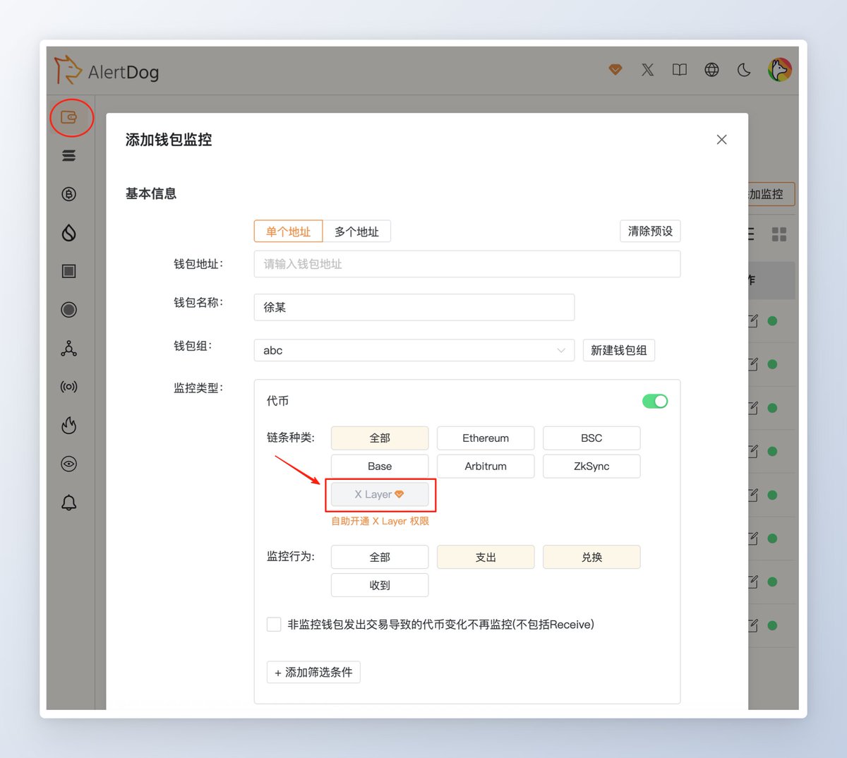 我们的监控平台已经支持 X Layer 链的实时监控 OKB 价格回调了, PVP搞起来! 链上监控就用AlertDog 监控狗 关注官推➡️ @alertdogio 具体用法教程: 1⃣ 打开 https://t.co/tp5ilQhf0O 网站, 使用google账户或钱包登录 2⃣ 点击 "EVM钱包监控" 添加要监控的钱包, 设置上名称, 最后选要接收的通知推送的平台 3⃣ 一旦有钱包有交易, 立马收到通知!