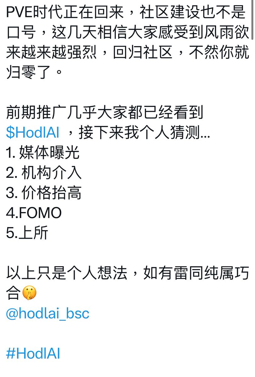 前期推广几乎大家都已经看到 $HodlAI ,接下来我个人猜测…