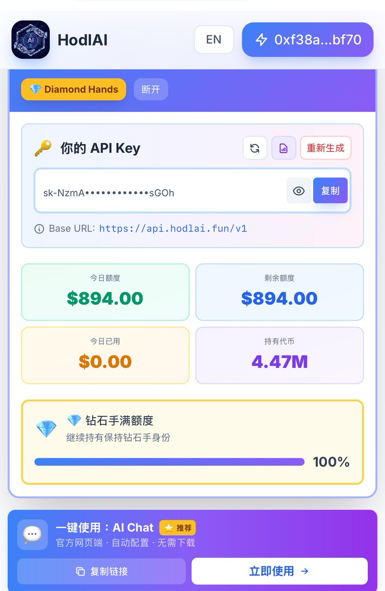 刚刚把每天 $HodlAI 的2000多U的API key额度都免费送给人家用了,每天都有2000多U哦,就是这么的朴实无华😎