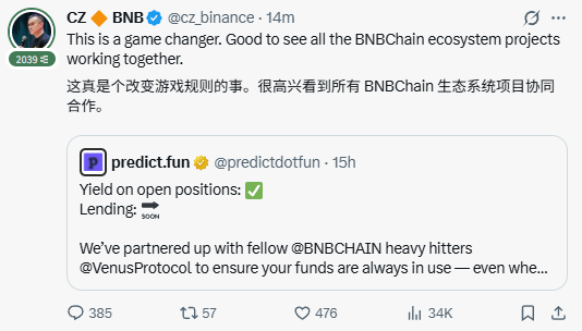BSC上的几个预测市场,opinion 目前交易量第一,predict被CZ提及过3次以上,而 probable 同样是 YZi Labs + pancakeswap + BNB Chain 官方背书的背景,币安独资领投,但好像只被CZ提过1次