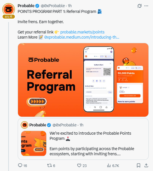刚刚 @0xProbable 积分赛也开了